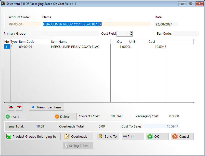 Click on this option to add coded overheads which apply specifically to this sales item(e.g. packaging overheads)