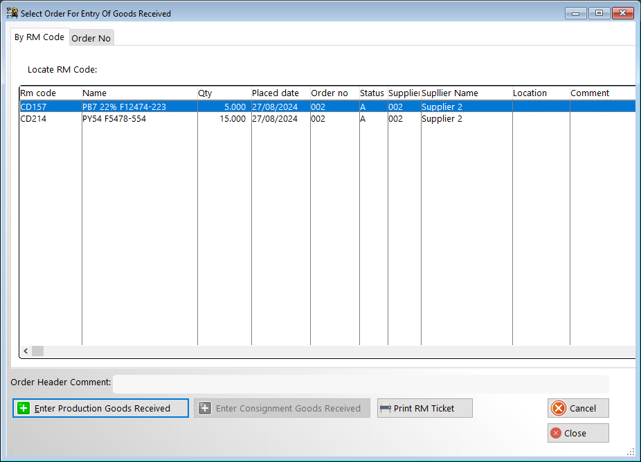 If selected raw material is not mapped to the supplier for this order you will be prompted to allow the material to be added to the current suppliers raw material supply list.