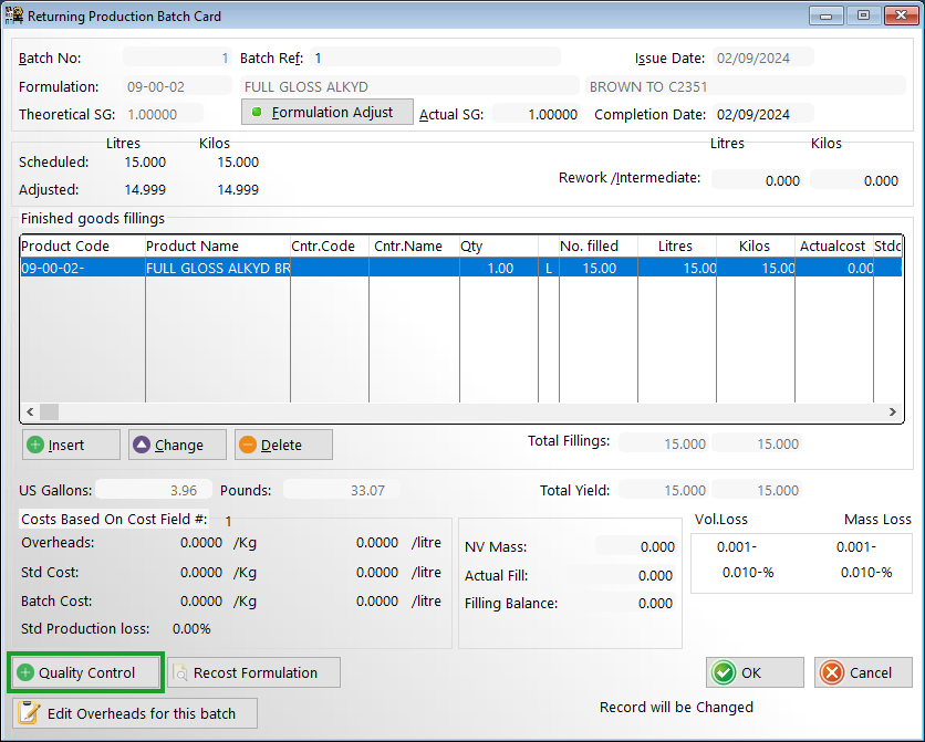 1. When returning a batch from menu option ‘Production > Work in Progress Returns’