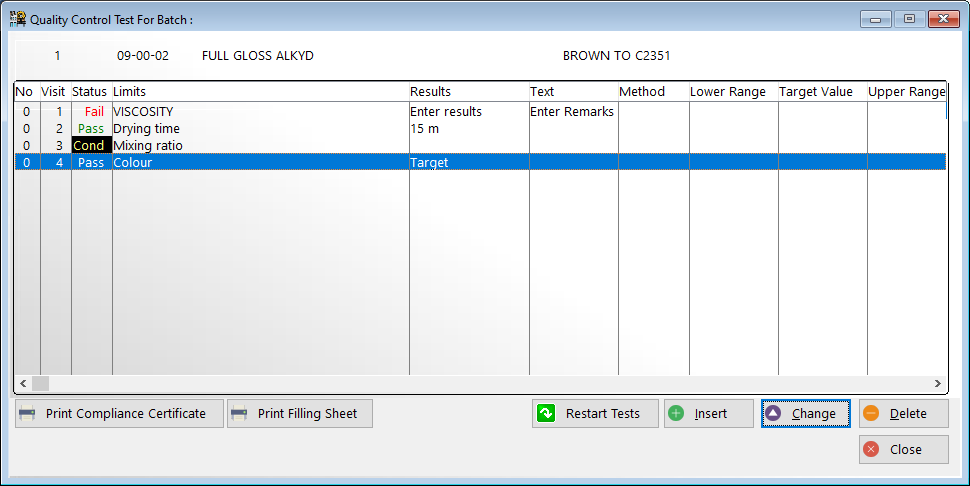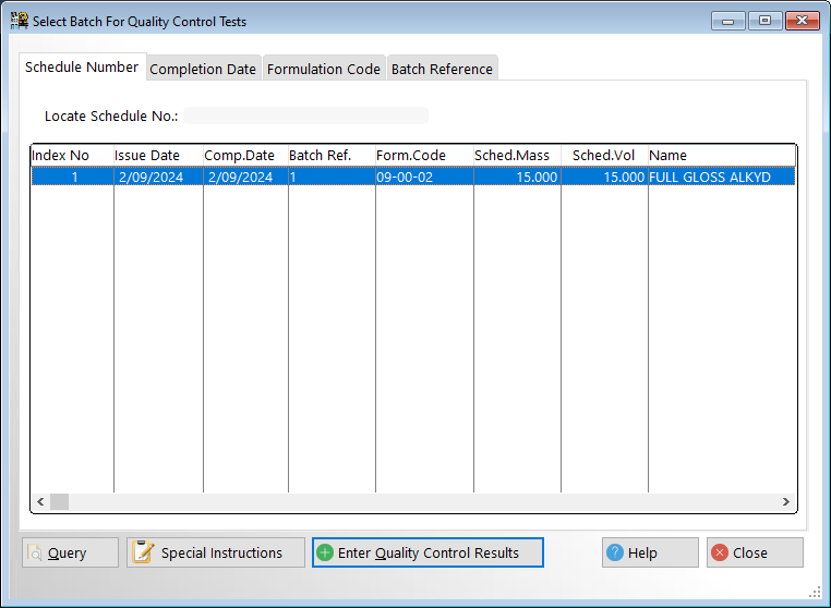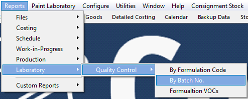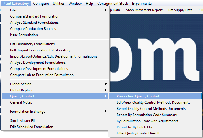 2 MENU OPTION: Paint Laboratory > Quality Control > Production Quality Control
