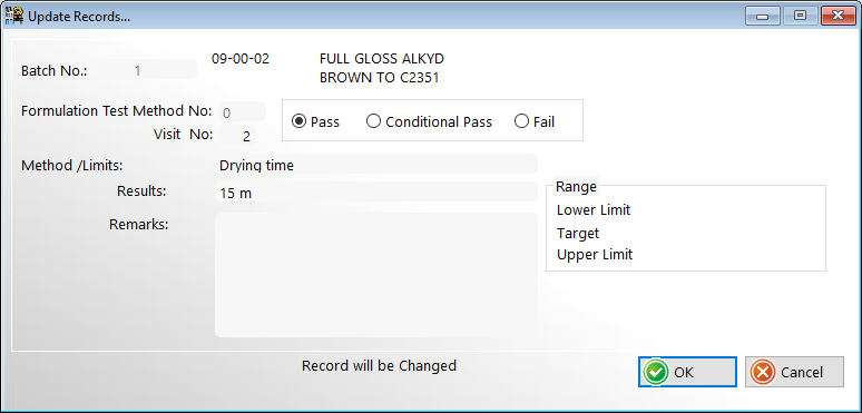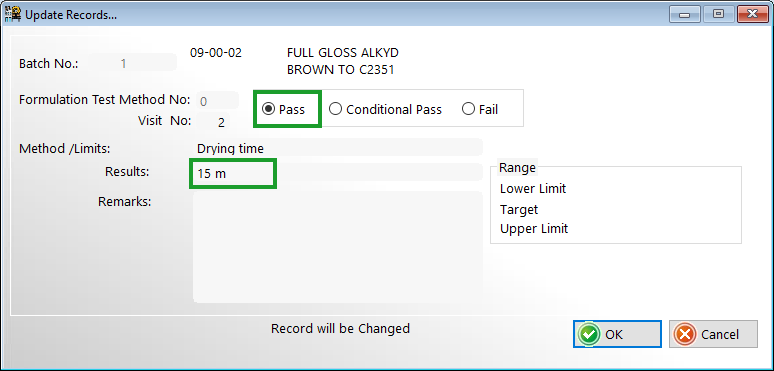 When entering the result for a particular method either click pass conditional pass or fail for that particular result