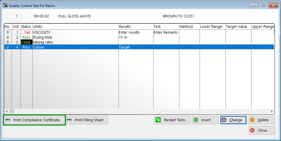 When there has been a pass or conditional pass for every test then the compliance certificates for that batch may be printed